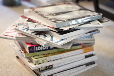 I had a year and half to plan the wedding and it became almost a forced habit to pick up a new wedding magazine when I was in stores. This is absolutely one of the Pass It Down item from bride to bride. Candace my dear friend gave me a really good selections of them and I passed them down to Meghan after our wedding. I only kept a few that actually inspired me for our wedding. For example, the floral style, the dress style, wedding favors and vendors. I actually found our florist from one of the magazine - Ceremony Magazine. Oh, you saw that there was a book called "Idiot's Guide for Wedding" yea? That's right. Some of the stuff were hilarious to read. But it was pretty handy when you were looking for traditional ceremony customs or some must-known tips. Just thought I posted it here to remember that I used to have piles and piles of wedding magazine in my room!